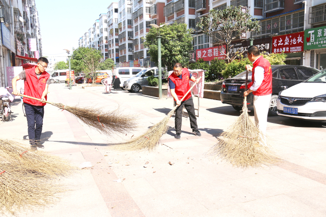 日前,县交通运输局组织机关20余名志愿者到共创共建小区—军民中心村开展打扫卫生活动。志愿者们顶着烈日,挥动扫帚清扫着路上和角落里的垃圾,为“两城同创”贡献自己的力量。