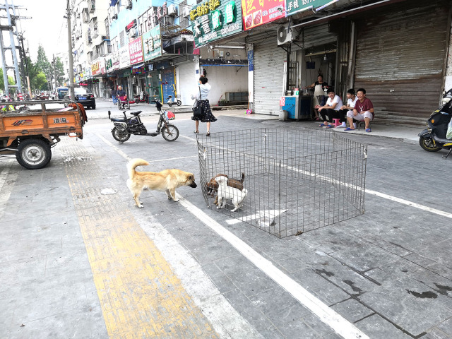 经整改,金城路边圈养的小狗已被管制。