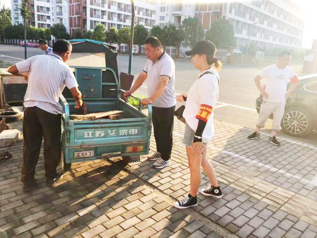 初见陈妍,是在她们的共建区域,一件白色大汗衫,一条牛仔短裤,一双黑色板鞋,头戴黑色的棒球帽,最引人注目的是挂在她脖子下面的蓝毛巾。手里拿着个很时尚的环保袋,如果不是看见她臂膀上的志愿者红袖章,我还真以为她是个跳街舞的姑娘。只见她一路蹦蹦跳跳,眼睛不时地往地上看,偶尔发现地上有个杂物。她立马弯下腰捡起来放进她的环保袋。