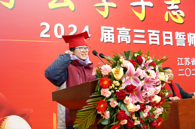 涟水中学负责人胡恒进在致辞中表达了对学子们的殷切期盼和美好祝愿。他希望全体高三学子能牢记成人不是一己之功,应常怀感恩之心,恒立高远之志,以“山登绝顶我为峰”的雄心抱负跨越赶超,以“咬定青山不放松”的坚韧意志奋勇拼搏,以“一寸光阴一寸金”的惜时观念砥砺前行,以“任尔东西南北风”的乐观心态爬坡过坎,以笃实的行动饱满六月的果实、嘹亮人生的凯歌、助力民族的复兴!