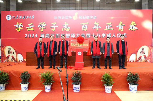 学校领导班子成员为2024届高三高考倒计时100天揭牌。