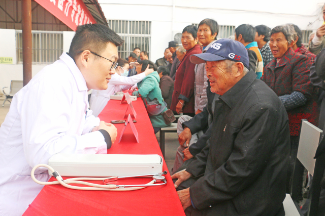 近日,农工党淮安市委组织市级三甲医院专家团到成集镇开展义诊下基层活动,促进基层医疗卫生水平不断提升,受到了当地广大群众的一致好评。图为三甲医院专家团成员为当地老百姓进行义诊。