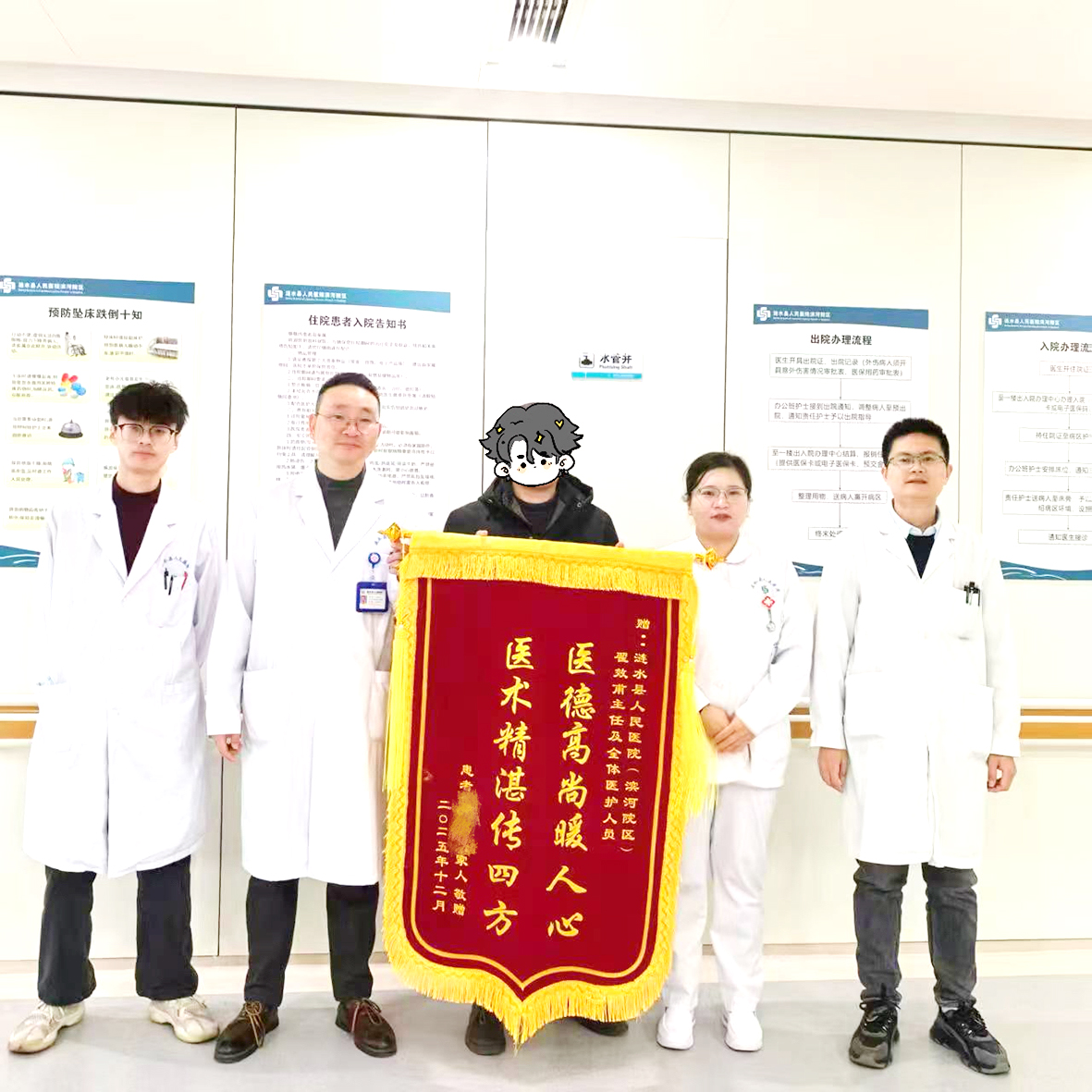 住院的日子里,袁阿姨60岁的亲妹妹一直陪在身边,从日常的喂水喂饭、协助洗漱,时刻关注袁阿姨的身体状态。4病区的医护人员也时刻留意着袁阿姨的恢复情况,每天按时查房、调整治疗方案,耐心解答家属的疑问,让一家人悬着的心慢慢放了下来。12月4日,袁阿姨的身体达到了出院标准,顺利办理了出院手续,家属特意定制了一面锦旗,送到了神经外科的医护办公室。袁阿姨的儿子攥着翟效甫的手,红着眼眶说:“翟主任,真的不知道怎么感谢您才好,我妈当时疼得都受不了了,我们都以为要留不住她了,是您把她从鬼门关里拉了回来。”袁阿姨也拉着责任护士的手,反复念叨:“姑娘们天天来帮我擦身、量血压,比家里人想得还周到。”