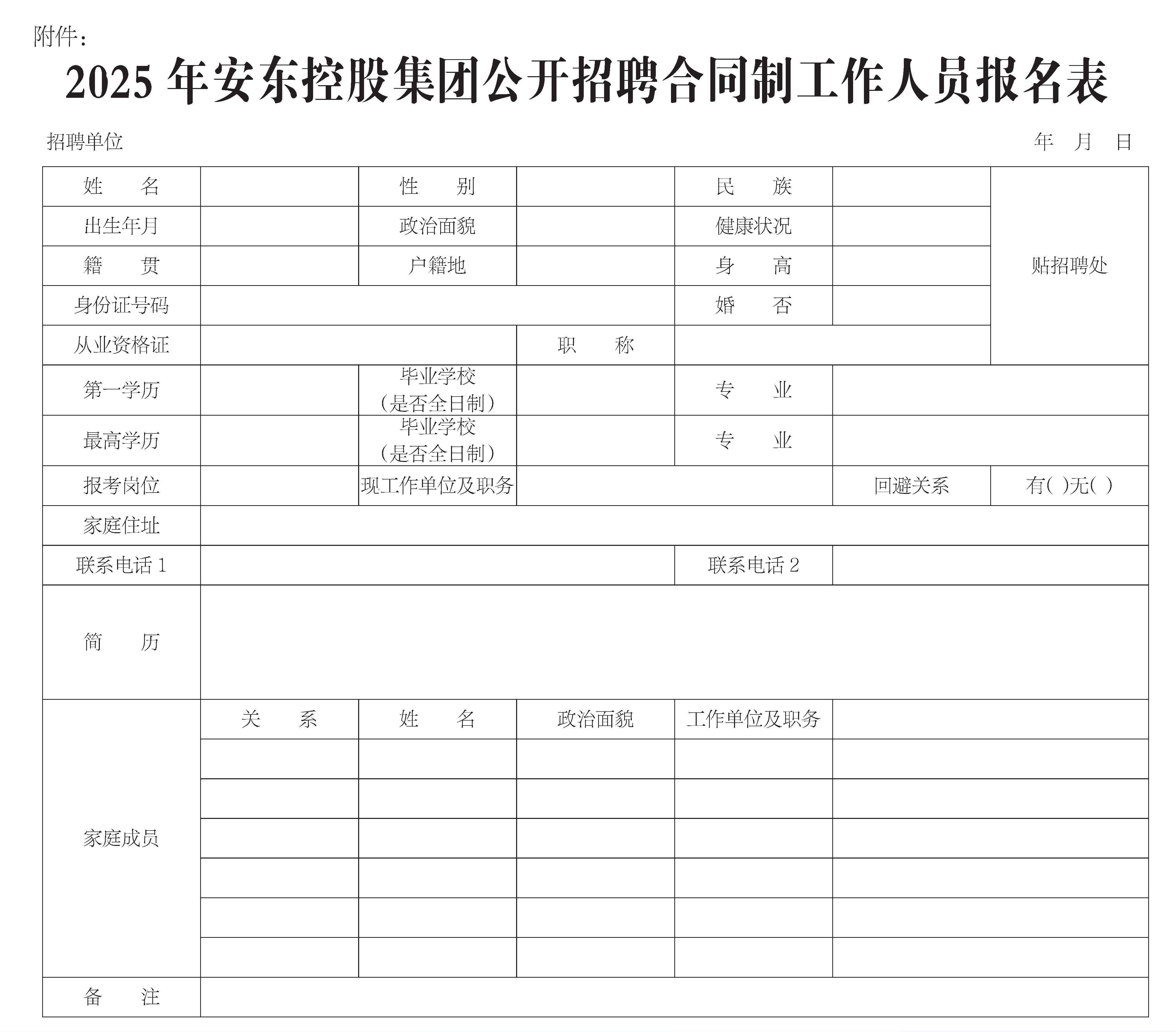(1)《2025年江苏安东控股集团有限公司公开招聘合同制工作人员报名表》(见附件);