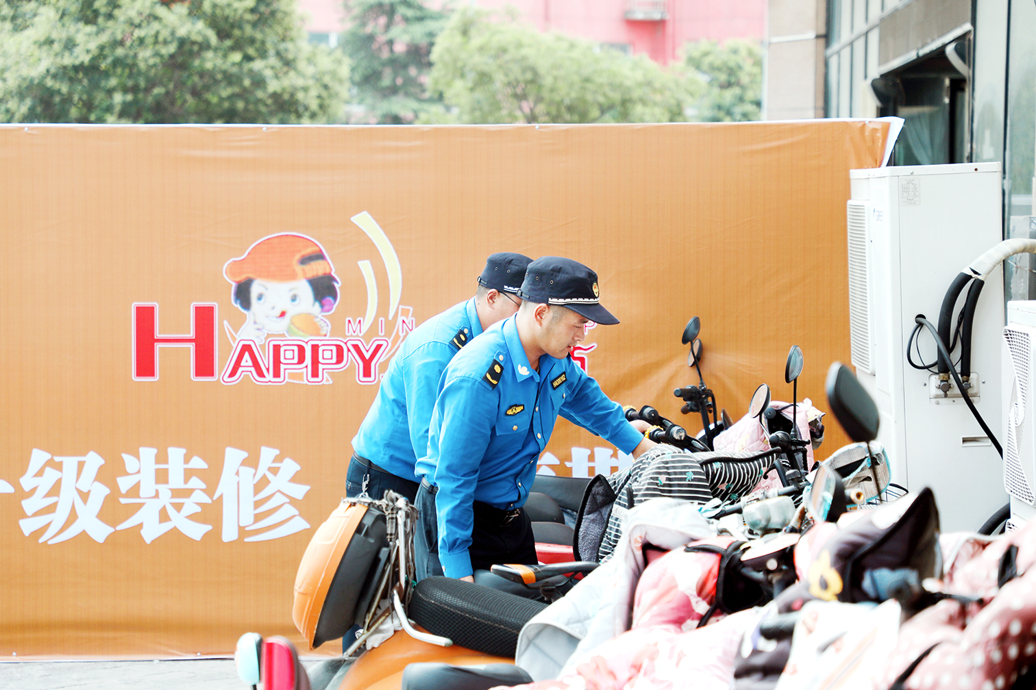 为着力解决辖区非机动车乱停放“顽疾”,县城管局综合行政执法大队组织执法人员采取“车巡+步巡”“错时执法”等方式,对重点道路、重点区域不间断巡查,及时查纠违停车辆。■ 融媒体记者沈漩摄...