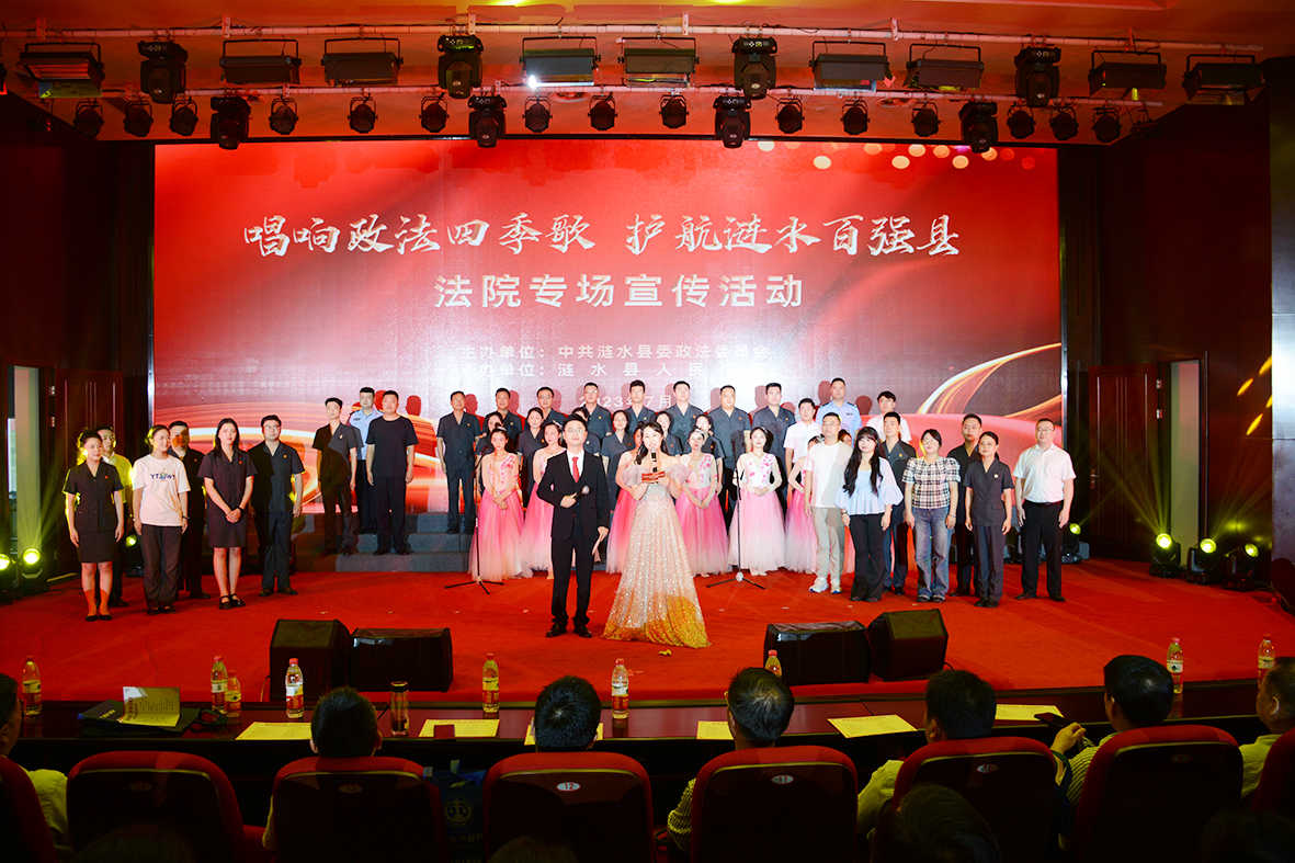 7月11日,由县委政法委主办、县法院承办的“唱响政法四季歌 护航涟水百强县”法院专场宣传活动在涟水农商行二楼报告厅举行。县法院的干警们通过自编自演的节目,用青春的朝气和激情,诠释公正、正义的执法理念,展示公正为民、实干担当的行业风采。■ 融媒体记者 许成亮摄...