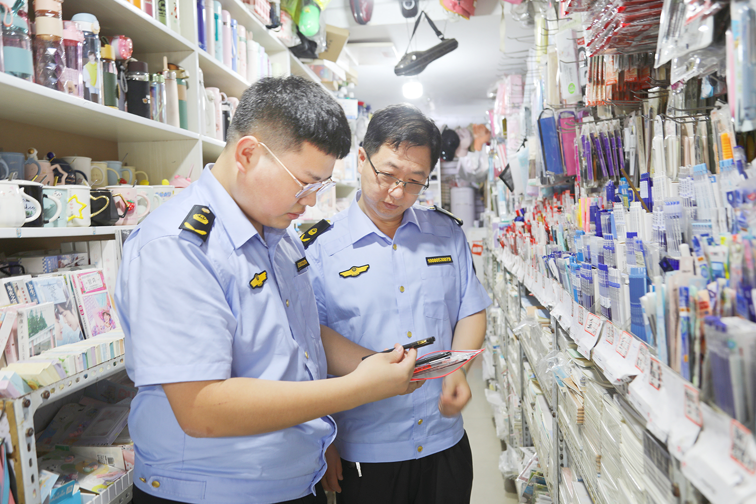 县市场监管局工作人员检查文具用品市场
