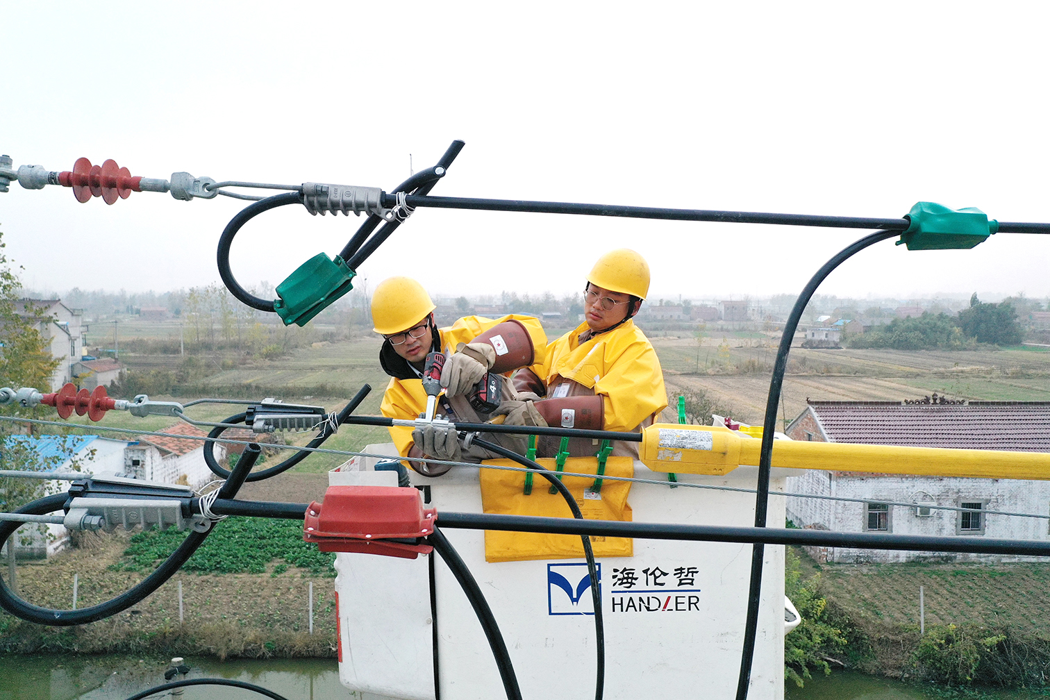 11月10日,国网涟水县供电公司工作人员在10千伏北集北121线道行支线67号杆带电搭接柱上开关引线。连日来,涟水县供电公司针对10千伏线路存在的安全隐患,组织人员通过带电作业,及时处理设备隐患,确保线路安全可靠运行。■ 融媒体记者丰其生摄...