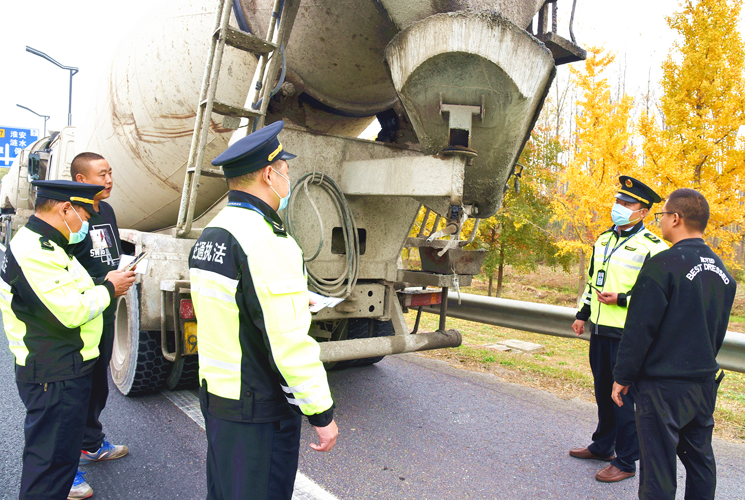 县交通运输综合行政执法大队对混凝土搅拌车辆实施督查