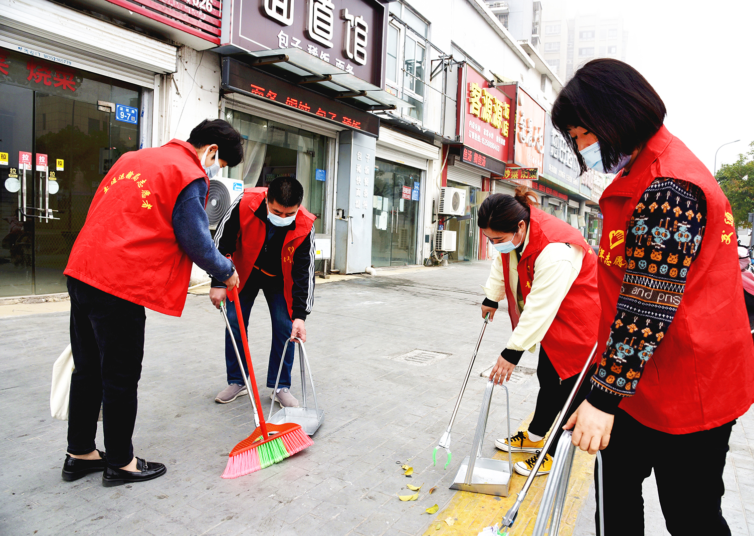 县交通运输局机关青年志愿者坚持每周五集中到共创共建单位莲花社区分组打扫杂物、捡拾烟头、劝导市民不占道经营,引导市民有序停放车辆,提醒骑行人员戴好口罩和头盔等,受到区域市民一致好评。■ 通讯员胡湖 孙庆荣摄...