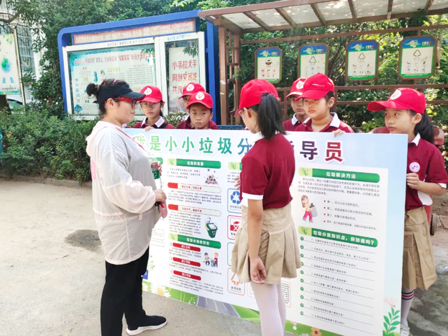 自全县创建全国文明城市“夏日大会战”启动以来,县教育体育局积极开展“小手拉大手、共创文明城”活动。图为“小小垃圾分类指导员”走进小区,开展垃圾分类知识宣讲,引导居民对生活垃圾进行规范分类、定点投放。■ 通讯员魏志东唐伟俊摄...