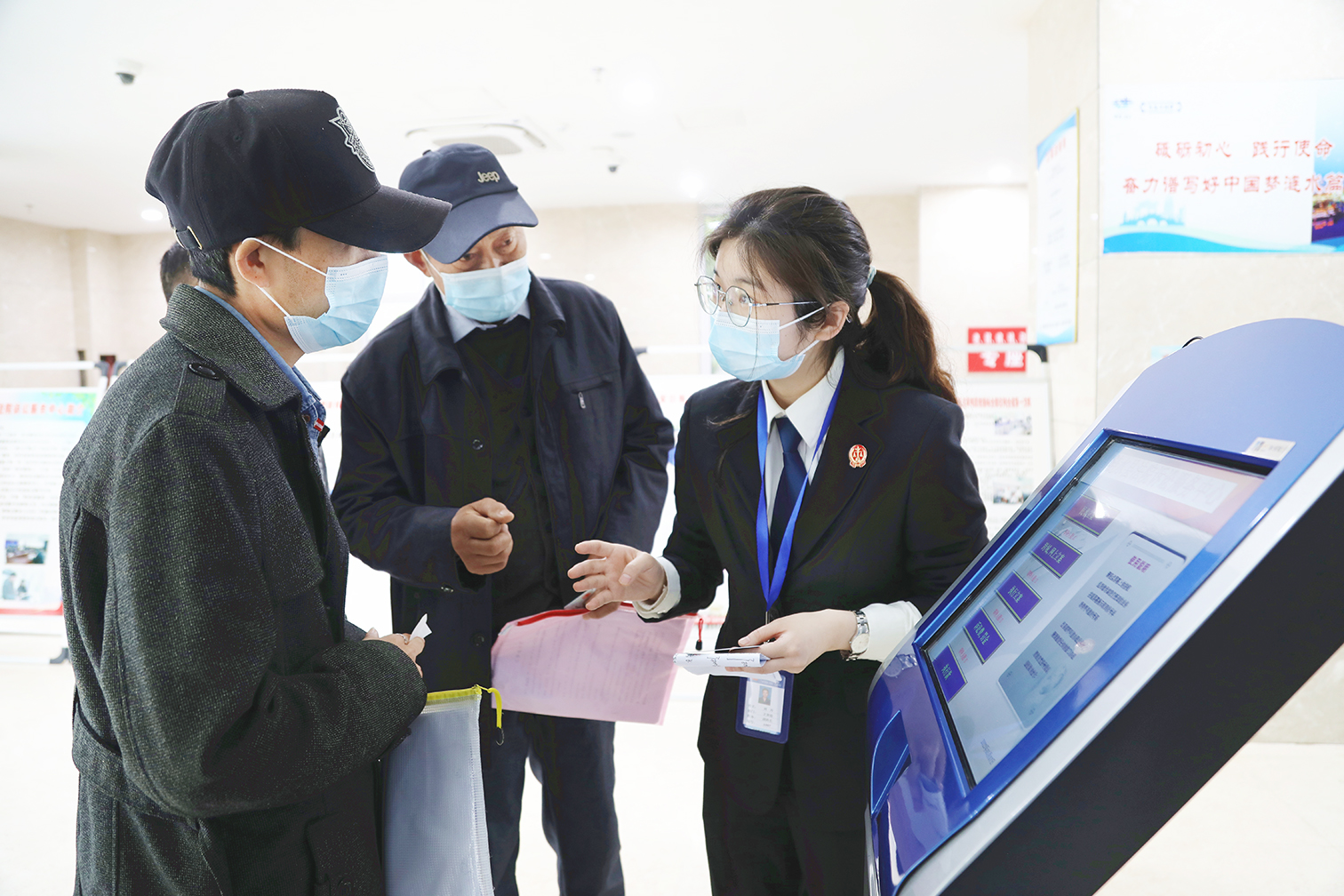 在县法院诉讼服务中心,当事人可享受到优质便捷的诉讼服务。自助立案、信息查询等办事全流程服务,群众立案登记查询更智能便利,当事人材料流转更高效快捷,办事服务环境宽敞舒适。■ 融媒体记者高婉莹摄...