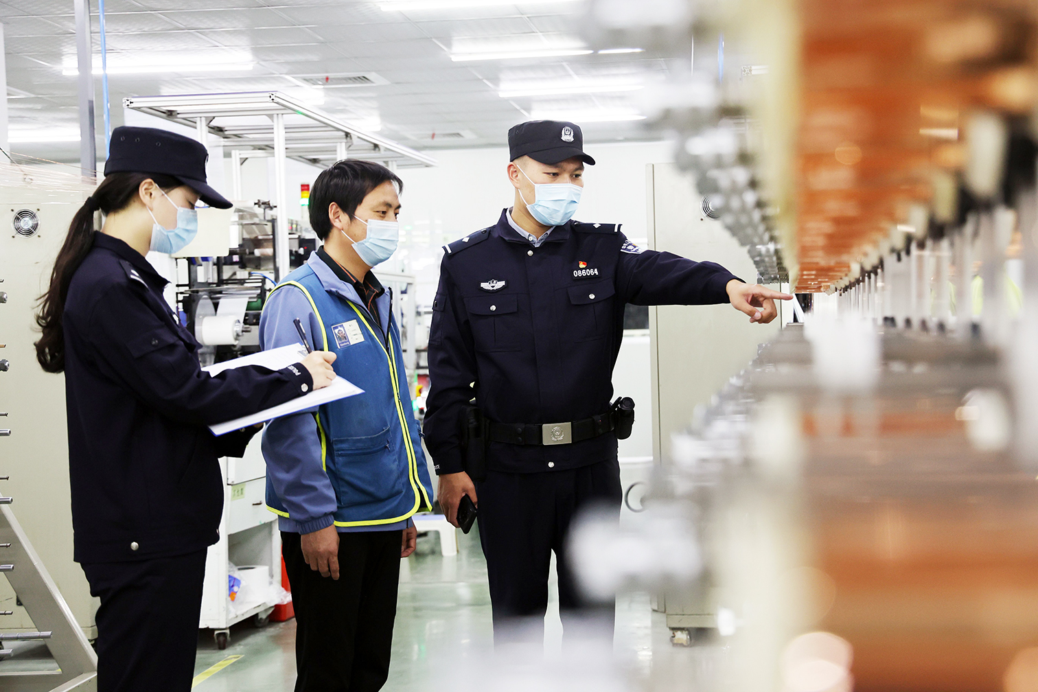 近年来,县公安局以开展“项目警官制”为抓手,为全县重点工程建设保驾护航,营造良好治安环境。图为该局经济开发区派出所民警正在向企业了解实际工作生产情况,并向企业征求意见建议。■ 通讯员钱柏州摄...