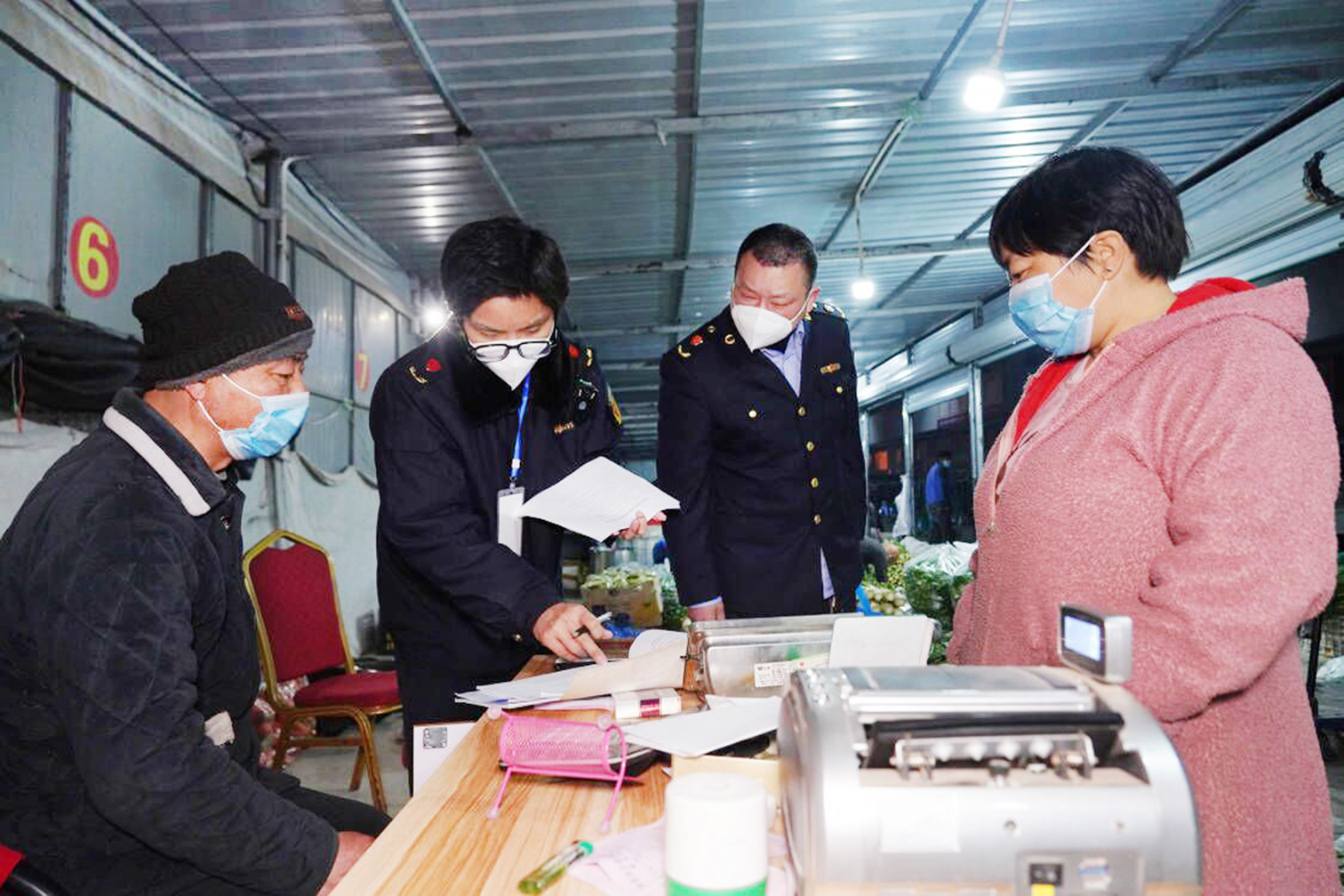 4月5日,县市场监督管理局组织6个小组执法工作人员分区检查,对市场内160余家销售蔬菜、干货调味品、熟食、冷冻食品、水产、水果等各类物品的商户进行突击检查,重点查看核酸检测证明、销售产品的进货票证,宣传非必要不从外市进货、外地车辆来涟必须到属地报备等疫情防控政策。■ 融媒体记...