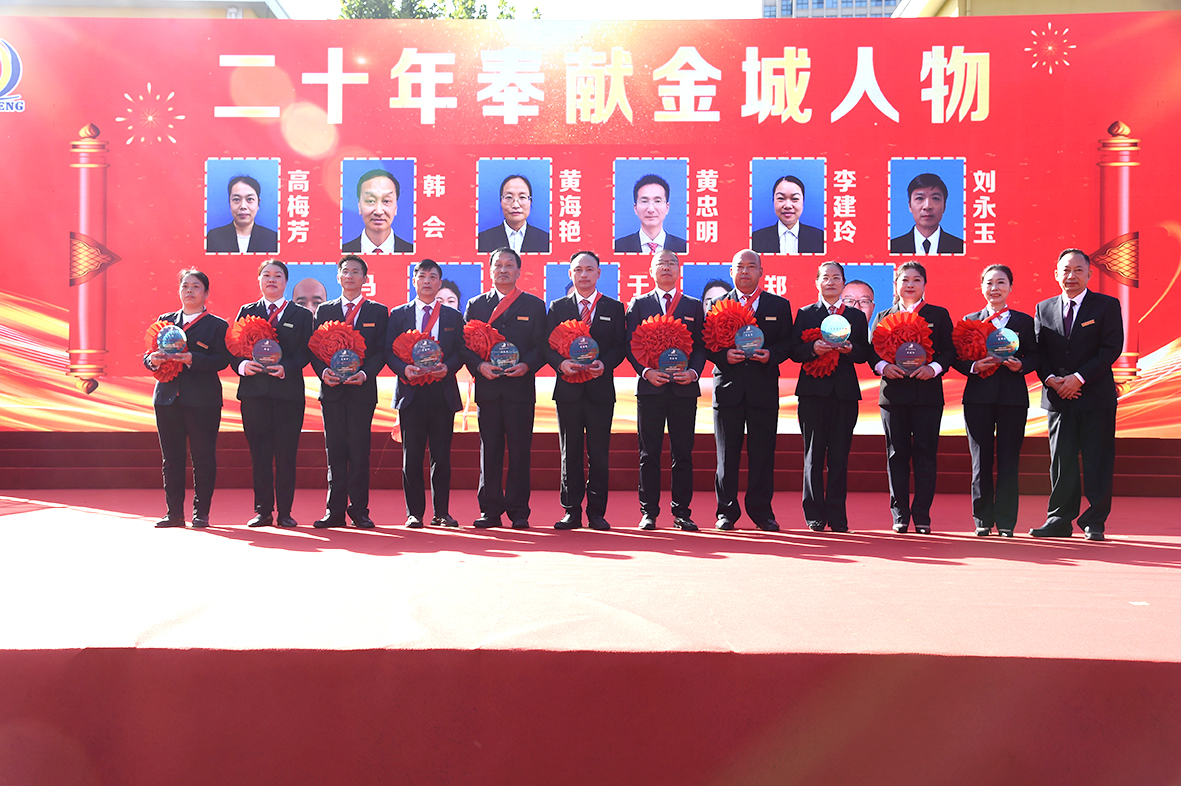 随后,大会对为学校发展做出突出贡献的个人进行了表彰。与会领导现场颁发了“特别功勋奖”“特殊贡献奖”“二十年奉献金城人物”,以及“第二届感动金城人物”等奖项。