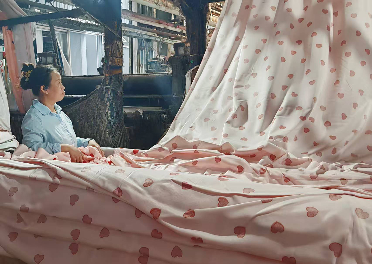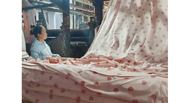 位于涟水经济开发区的江苏瑞展纺织实业有限公司,主要生产家纺面料、床上用品、窗帘、地毯等,产品主要出口到欧美、南美、中东等地,在手订单已排至年底。图为该公司忙碌的生产场景。■ 融媒体记者邵仲摄...